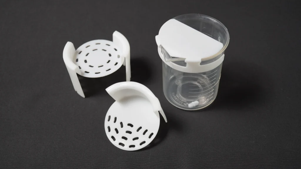 昨年は、その声を受けてシリコン製でビーカーの口全体を覆うネット型の試作品を作成しました。